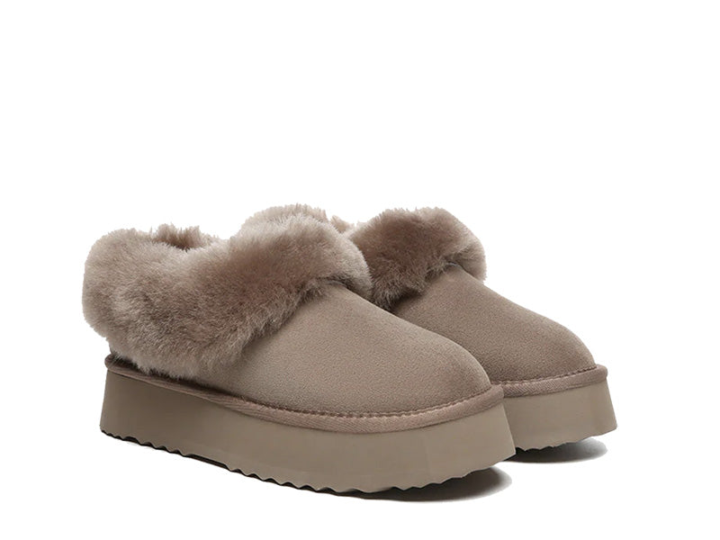 SALE. DEMAND IS HUGE. STOCK IS LIMITED. BE QUICK. DON'T BE LATE. Bestselling Fluffy Collar platform slippers is a longtime fan favourite, continuously rediscovered generation after generation due to its ultra-lightweight, durable outsole, plush wool lining, and suede uppers. Super comfy. Mega trendy. Order now. AFTERPAY is available. Buy now pay later.